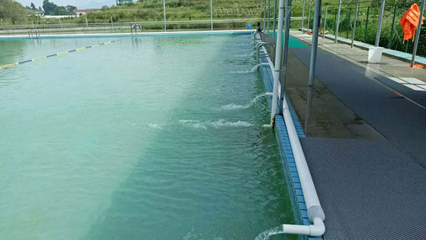 投放硫酸铜,正常情况下以每1000 立方水投放2~3kg 为宜,每月投放2 次即可(且在此药投放2小时以后才能做以下步骤)。但是随着游泳者的增加会带来一些有机物污染,下雨也会使水质发生变化引起藻类生长,此时就需要再次投放硫酸铜。另外,若处理的是新水也需要加倍投放。